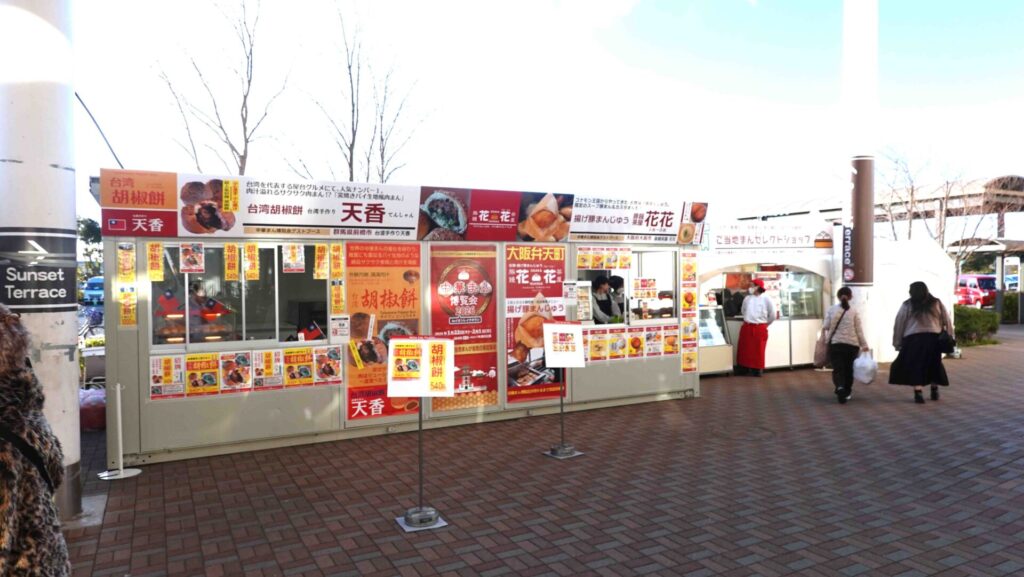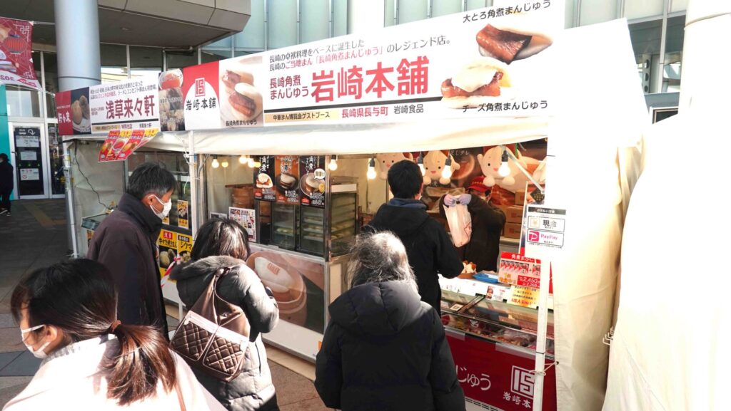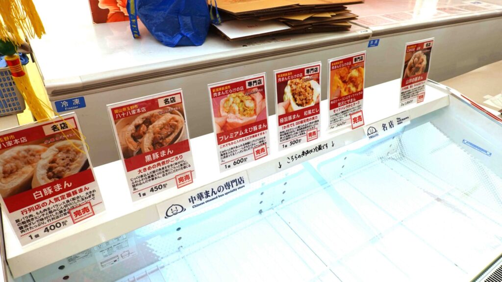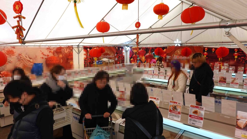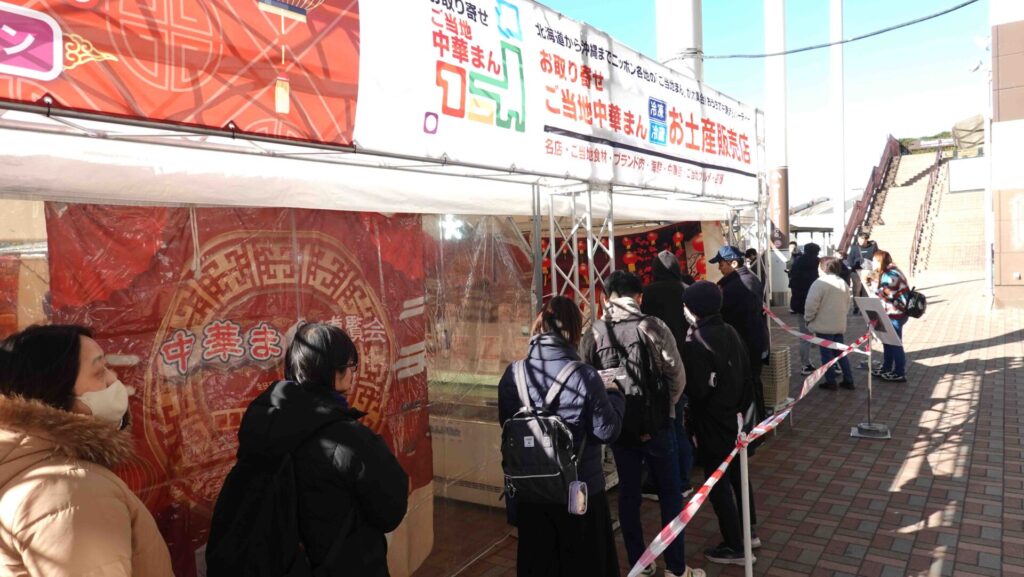 一番並んだのが開店時のお土産店。お土産店ではおとりよせ3~6か月待ちは当たり前の岡山「山珍の豚まん」が目的というお客様。山珍の豚まんは本日分13時頃に完売しました。ほとんどのものは明日以降も揃いますので、是非皆様のお越しをお待ちしております。