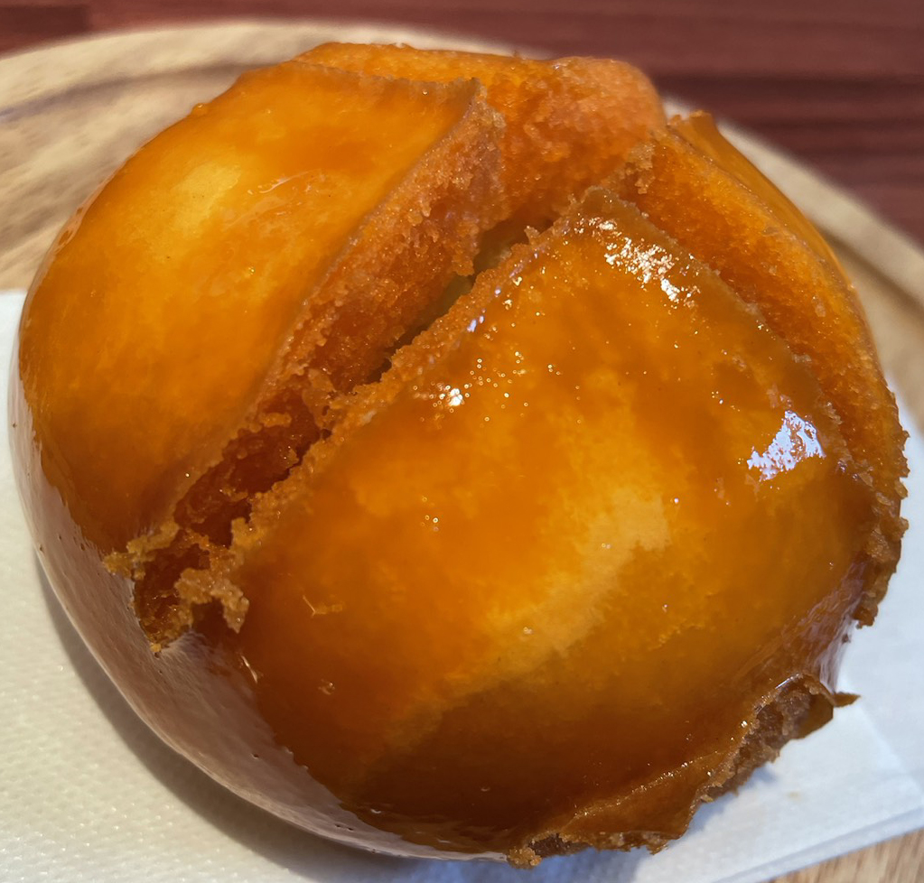 カスタードクリームが入ったスイーツまんを素揚げでカラリと揚げた「カスタまん」。